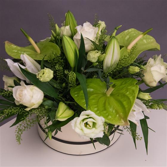 Leave it up to the experts! Choose our Florist Choice Hat Box Arrangement and let one of our team create you a bespoke arrangement in oasis with the best fresh flowers in stock.