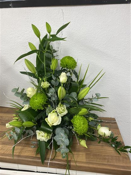 Florist Choice Sympathy Arrangement- And arrangement of flowers, made in a container. This design can be made in either front facing design or all round. Please select from the drop down box below.